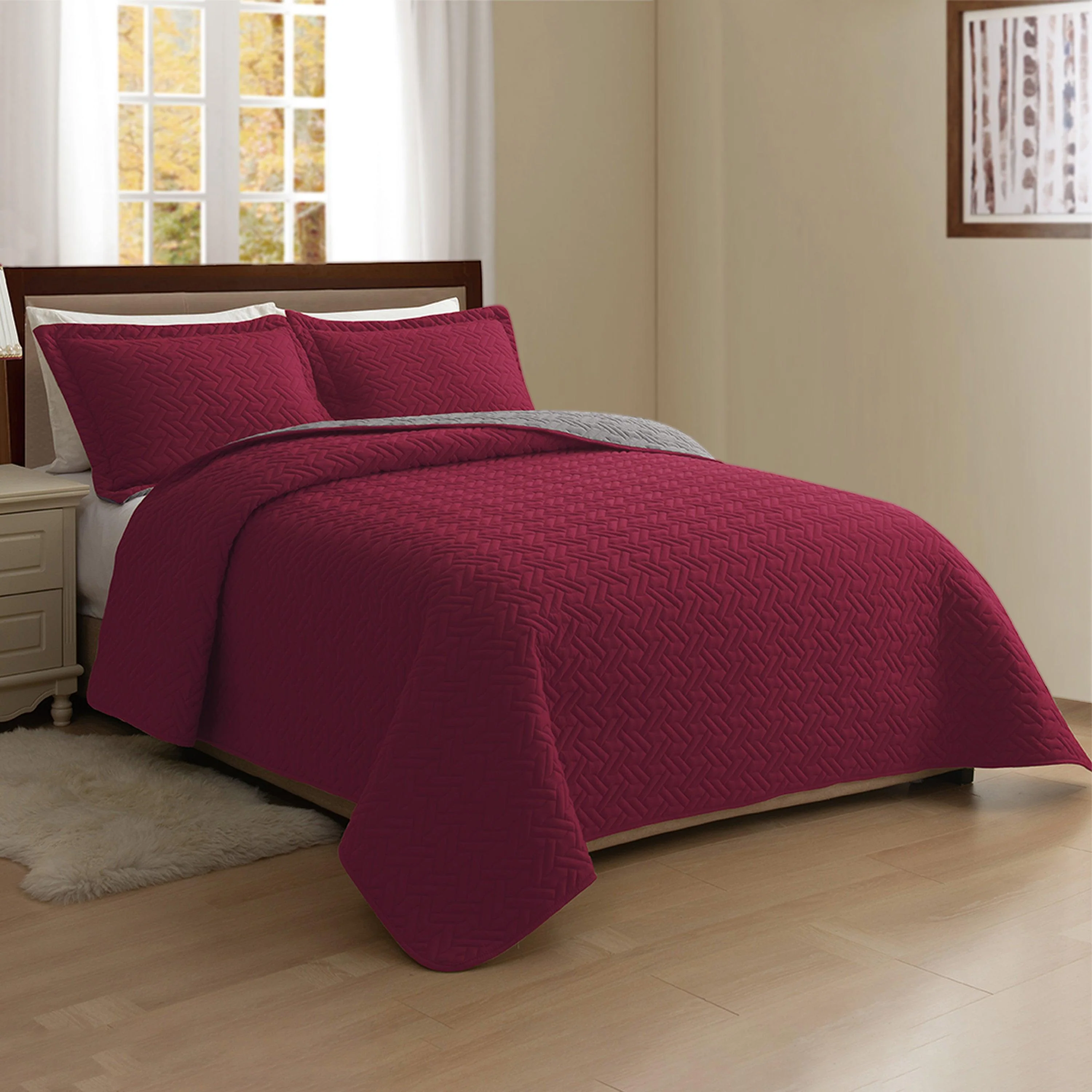 Elegant Comfort 3-Piece Majestic Quilted Reversible Bedspread Coverlet Set